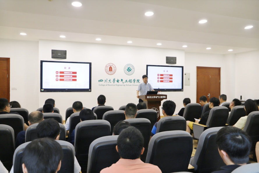 围绕“强国建设之问”,赵书记指出,综观大国的兴衰、民族的崛起,离不开教育科技力量的坚强支撑,更离不开正确指导思想的有力指引。当前,我国要全面建成社会主义现代化强国,习近平新时代中国特色社会主义思想是关键、核心。其世界观和方法论更为学校和学院高质量内涵式发展指明了路径,我们坚持人民至上就要牢固树立以师生中心的办学理念,坚持自立自信就要坚定不移走好建设中国特色、川大风格电气学院之路,坚持守正创新就要处理好继承与发展的辩证关系,坚持问题导向就要着力打通制约学院高质量发展的难点、堵点,坚持系统观念就要推动学院各方面工作全面协调发展,坚持胸怀天下就要树立追求卓越的精神和大器天下的情怀。