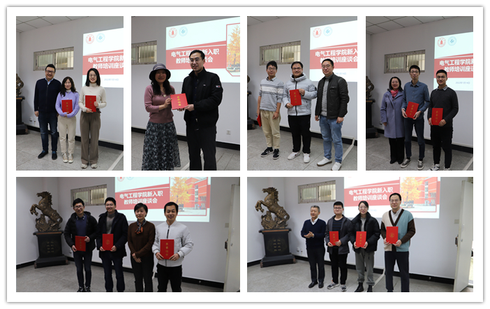 会议第一阶段为新入职教师培训座谈会。张英敏副书记首先向新入职的教师介绍了参会人员,并开启入营仪式。仪式上,学院参会领导向13名新入职教师代表颁发了“电气入营证”,欢迎他们成为永利集团3044am大家庭的一员。新进教师同时进行了简单的自我介绍,加深彼此的了解。