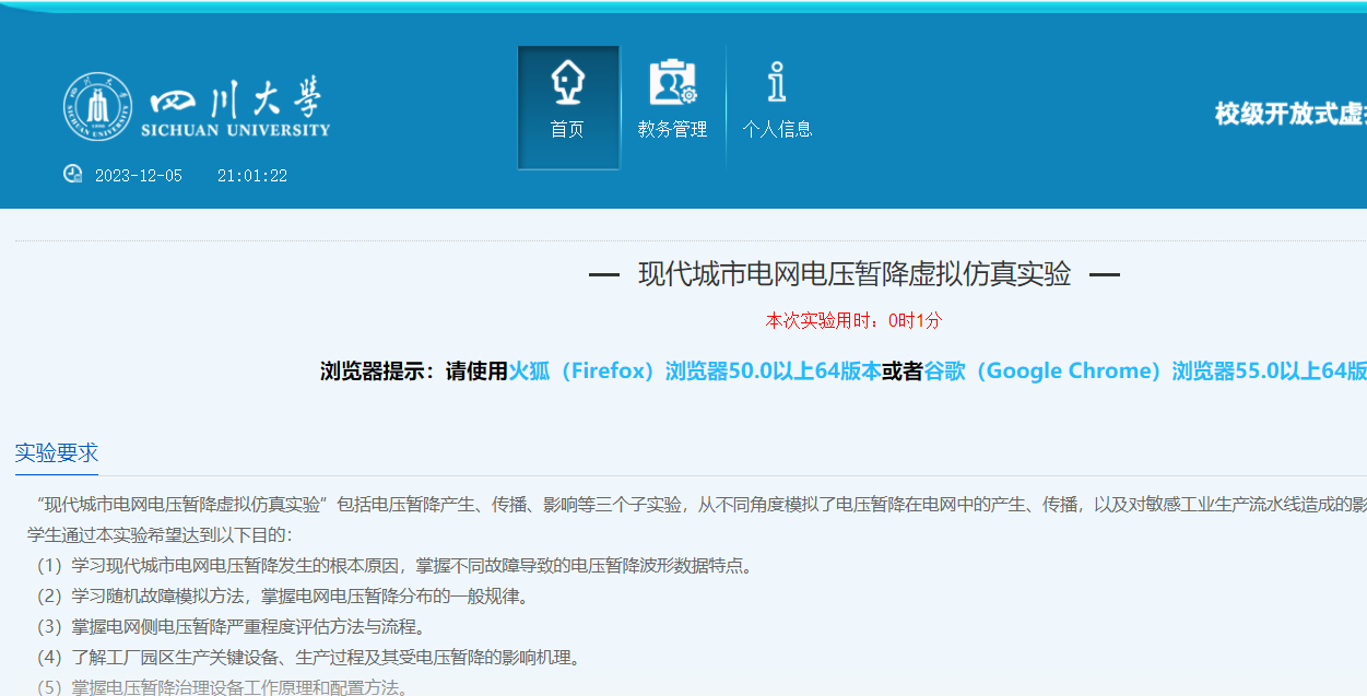 现代城市电网电压暂降虚拟仿真实验项目